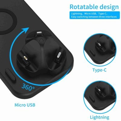- Instantly charge your phone, Apple Watch, AirPods or Apple Pencil at the same time and easily switch between 3 interfaces: Light, Micro USB and Type-C