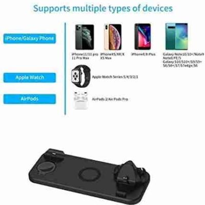 - Our 6-in-1 wireless charging station provides power supply: 7.5W for iPhone SE 2020/11/11 Pro/11 Pro Max/XS/XR/X/8/8 Plus, 10W for Samsung Galaxy S20/Note 10/Note 9/Note 8/S10/S9/S8/Edge and more; 3W for headphones: AirPods, AirPods Pro and other earbuds; 2W power of watch and touch pen: Apple Watch Series 5/4/3/2/1, Apple Pencil, etc